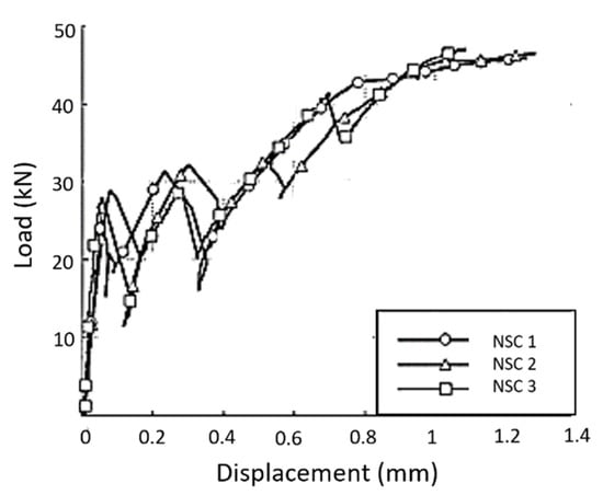 Load–displacement curves for tie-beams testing (Adapted with permission from reference []).