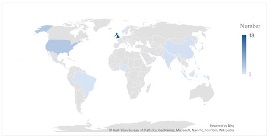 As shown in Figure 3, the majority of articles have a UK–industry-focussed approach (n = 48), with others including Australia, USA, Brazil, Hong Kong, India, Indonesia, Singapore, Slovenia, Sweden, and UAE (n = 32). These articles were reviewed to identify key themes to ascertain the opportunities and obstacles to the use of responsible sourcing as a procurement mechanism within green supply chain management.
