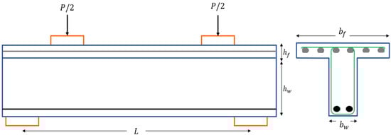- Bourget, S.; El-Saikaly, G.; Chaallal, O. Behavior of Reinforced Concrete T-Beams Strengthened in Shear Using Closed Carbon Fiber-Reinforced Polymer Stirrups Made of Laminates and Ropes. ACI Struct. J. 2017, 114, 1087–1098. [Google Scholar] [CrossRef]