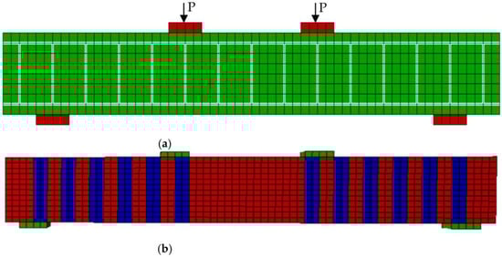 Various numerical models are generated under monotonic loading and validated against the experimental results to evaluate their reliability in predicting the monotonic behavior of both control and FRP shear-strengthened specimens. Figure 17 demonstrates a typical beam model of the present study.