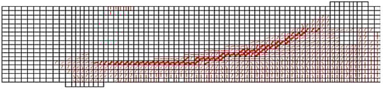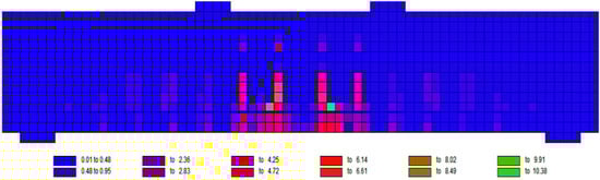The failure mode of the FB30-2 specimen that was tested by Dong et al. [] is a flexural failure mode, which is comparable to the numerical one. Figure 24 illustrates the numerical crack pattern at failure, which confirms the efficiency of the non-linear finite element models.