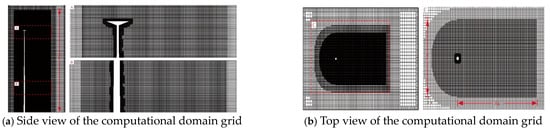 The meshing of the entity model adopts the nonuniform scheme for precision and less calculation. The encrypted area is set around the lamp pole when meshing. Figure 8 demonstrates the side view and top view of the calculation domain grid. From Figure 8, we can see that the semicircular encrypted area with a diameter of 6 m and a height of 40 m and rectangular encrypted area with length, width and height of 9 m, 6 m and 40 m are set around the lamp pole.