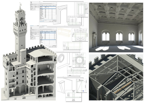The H-BIM model of Palazzo Vecchio can be adopted for several purposes involving its facility management, the proposal of strengthening interventions, the update of museal paths, or firefighting plans [73,74]. Last but not least, these informative models can be used not only by administrators and managers, but also for academic and didactic purposes for citizens and tourists through virtual 3D tours and augmented reality explorations [75].