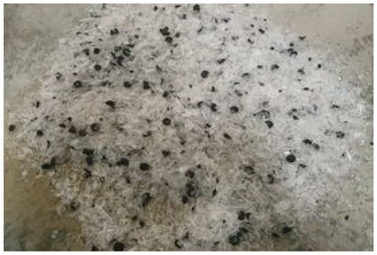Given the building industry’s high material need, recycling polymeric waste into new building materials is one viable option for significantly cutting down on plastic waste. The durability and mechanical characteristics of waste plastics in the building sector must meet the specified applications to guarantee safety and adaptability. Several studies have focused the use of reused plastic wastes in aggregates as a complete or partial substitute for natural aggregates. Successfully combining plastic wastes as fine aggregate, Hama and Hilal [] created self-consolidating concrete (SCC). According to their findings, adding fine plastic aggregate at a weight percentage of 12.5% may improve the fresh qualities of SCC, such as flow and filling ability. Alqahtani et al. [], Castillo et al. [], and Scarpitti et al. [] studied the feasibility of using recycled waste plastics in lieu of naturally occurring coarse particles in the concrete mixture. In addition, investigators found that the replacement of natural aggregates with greater waste plastics decreased the mechanical parameters (such as compressive, tensile, and flexural strengths, elastic modulus, and water absorbability). The substitution of coarse and fine aggregates with various waste plastics, namely polypropylene (PP), high-density polyethylene (HDPE), and polyvinyl chloride (PVC), was studied recently by Belmokaddem et al. []. Plastic trash was discovered to reduce density dramatically while enhancing acoustical properties in concrete. Synthetic fiber aggregates (PA) were used to replace natural aggregates, and other waste plastics were used as short fibers in fiber-reinforced concrete (FRC). Using a recycled polyethylene terephthalate (PET) container and synthetic waste filament, Khalid et al. [] carried out a study in FRC. Their experiments using a concrete substrate revealed that increasing the number of fibers and using an unconventional form can significantly improve the lift strengths of synthetic materials. They further implemented their work on a PET-FRC in a constructional beam. Despite their finding that plastic fibers added to concrete had little effect on the mode of failure, they did find that it greatly enhanced the structural capabilities of the beam in terms of cracks and failure strength. Further, Mohammed and Rahim [] recommended using recycled PET in FRC with high-stress concrete, demonstrating enhanced cracking tolerance afforded by PET fiber. Similarly, Forti and Lerna [] tested the effects of adding waste PET particles to mortar, finding that the combination increased the mortar’s durability.