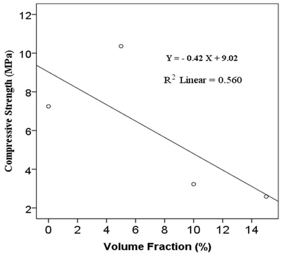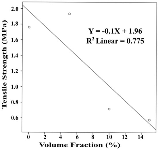 From Figure 14, the variation of tensile strength with the percentage of SP fiber in concrete can be correlated using the following equation (Equation (4)).