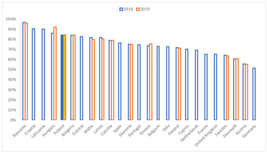 Figure 2 shows, in many countries, prices have increased even more (in Estonia, Latvia, Hungary, and the Czech Republic, for example). The above data are consistent with the data in the study by Sobieraj and Metelski [