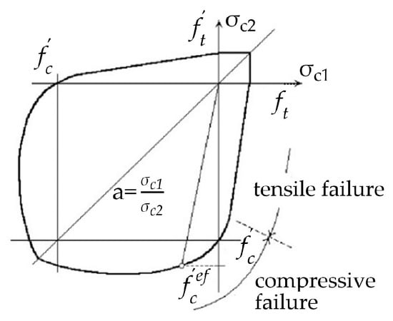 - Červenka, J.; Papanikolaou, V.K. Three-dimensional combined fracture–plastic material model for concrete. Int. J. Plast. 2008, 24, 2192–2220. [Google Scholar] [CrossRef]