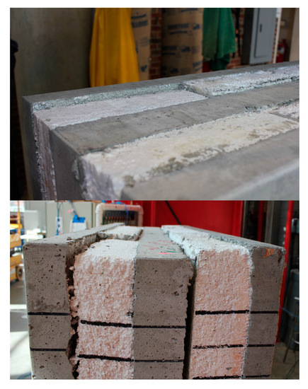 View of a typical failure mode showing shear between wythes.