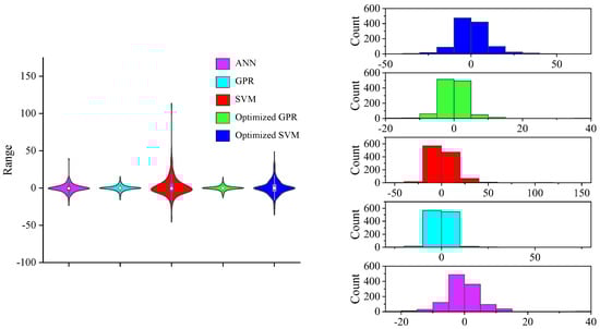 The architecture of the ML models is displayed in Figure 4. The ML methods (ANN, GPR, SVM, optimized GPR, and optimized SVM) used in the proposed research are described below: