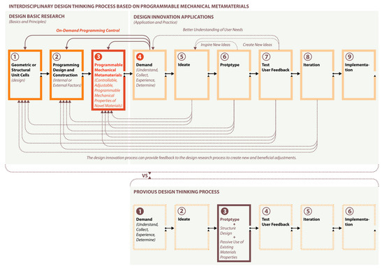 - Additionally, the design thinking process model of Stanford University and IDEO, Morris Asimow’s design process model, and the existing programmable mechanical metamaterial construction methods are selected as the main source of reference for new design thinking and methods.