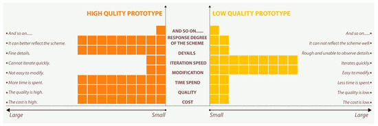 - Step 29: prototype. After the ideas have been generated, some of the better-evaluated creative solutions need to be selected for prototyping. Design prototyping refers to the production of low-cost, scaled-down products or solutions to test the feasibility of design ideas and reveal possible design problems. At the same time, prototyping can also test the practicability of the design plan from conception and paper to actual production. These issues will be further addressed in prototype iterations. As shown in Figure 16, prototyping is basically divided into two schemes.