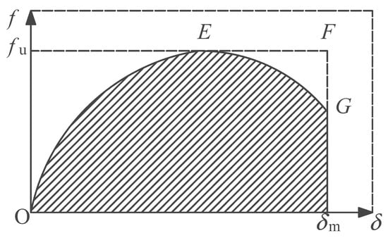 where is the area enclosed by the load–displacement curve and the abscissa, as shown in Figure 7. is the ultimate load, and is the ultimate displacement.