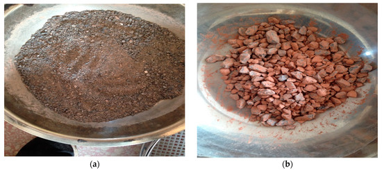 Aggregates with silt. (a) Fine aggregate with silt; (b) Coarse aggregate with silt.