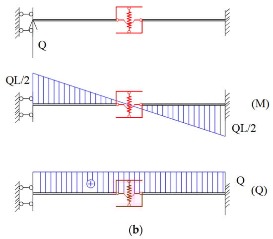 where: . The shear force is constant in the entire beam, thus: , . Due to the fact that the energy dissipation device is assigned in the middle of the coupling beam, so: . Hence: