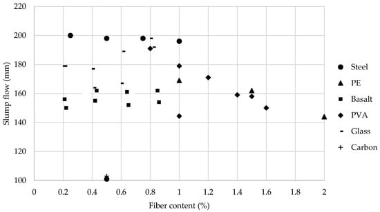 - In recent studies, PE fibers have been determined to impact flexural strength positively, so specimens with 1.4 vol.% PE fibers had greater flexural strength than those without fibers. Furthermore, the increase in the content of PE fibers increased the risk of twisting the fibers; consequently, this matter decreased the slump flow and workability of mixtures.