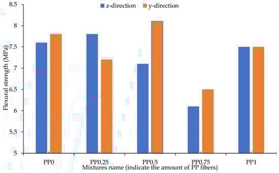- The use of PP fibers had both positive and negative effects on the 3DPC. The positive one is that PP fibers increased the mixture’s ability to bridge the cracks, and the negative one is that the fibers introduced the entrapped air to the mixture. Therefore, it is essential to determine the optimum dosage of fibers in order to obtain the highest flexural capacity and an economical mixture. Moreover, PP fibers improved the dimensional stability of 3DPC and reduced the shrinkage of mixtures.
