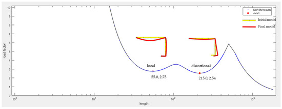 The FSM is widely regarded as an effective tool for the structural analysis and design of thin-walled elements [28]. The eigenvalue buckling analysis is based on the initial model of the structure and the small displacement linear theory, which can be used to predict the strength of thin-walled elements. Therefore, the FSM is a reliable numerical method to analyze complex edge-stiffened elements and to calculate the elastic critical buckling stress.
