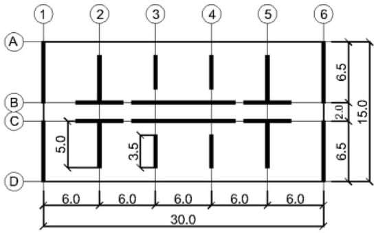 The study considered a plan configuration representative of a typical Chilean residential building, with a plan with two axes of symmetry.