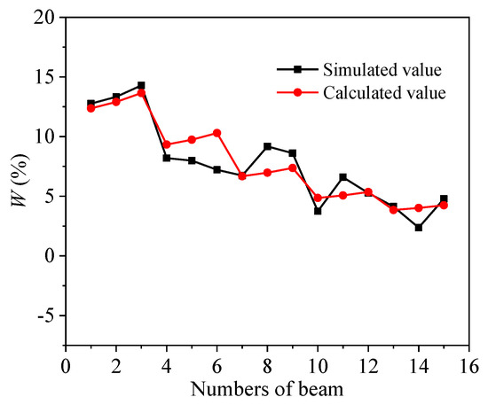 Equation (1) is applicable to high-temperature beams with a shear span-to-depth ratio less than 3.0. The reduction degree of the indirectly loaded RC beam in Table 3 was calculated using Equation (1), and the comparison between the calculated value and the simulated value is shown in Figure 17. It can be seen from Figure 17 that the simulated value of the indirectly loaded beam after experiencing a high temperature was in good agreement with the calculated value of Equation (1).