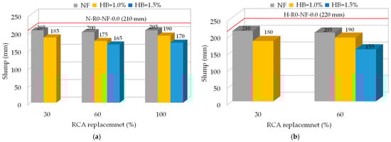 Slump of concrete mixtures: (a) NSC; (b) HSC.