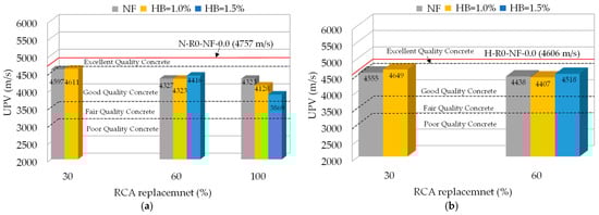 Ultrasonic pulse velocity test results: (a) NSC; (b) HSC.