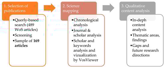 The remainder of the study is structured as follows. Section 2 presents the methodology of the research. Section 3 provides a quantitative analysis of selected scientific publications. Section 4 presents a qualitative analysis of selected publications based on three thematic areas and distinguishes future research directions. The last section summarizes the results and provides conclusions.