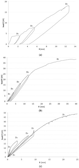 Table 2 shows the load steps Di considered for each beam model, ranging from D0, corresponding to the initial configuration without load and without any cracking damage, to Df, which indicates the failure load. Crack propagation up to failure mode was monitored with static load increase.