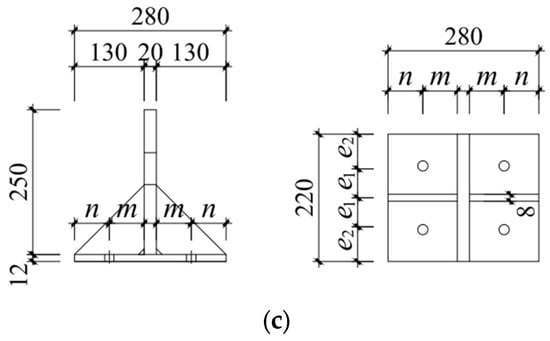 | Specimen No. | Geometric Dimensions | Bolt Diameter | Stiffener Rib Arrangement | ||||||