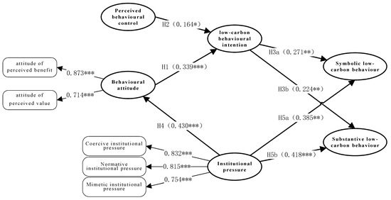 Institutional pressure positively influences low-carbon behavioral attitude.