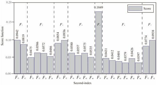 = 0.1619, = 0.1915, = 0.1587, = 0.1758, = 0.1849, = 0.1752, = 0.1650, . Similarly, the scores of all second-level indexes are obtained, and the results and sorting are shown in Figure 5.