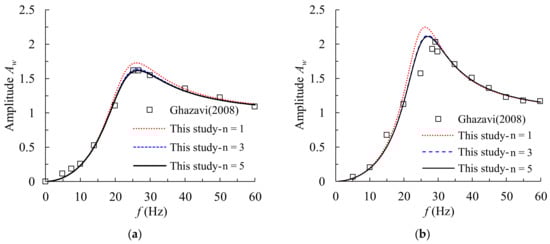 Comparison of dimensionless amplitude of (a) floating tapered pile; (b) end bearing tapered pile [].