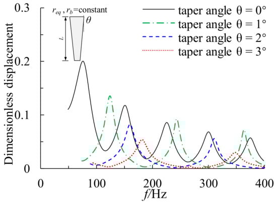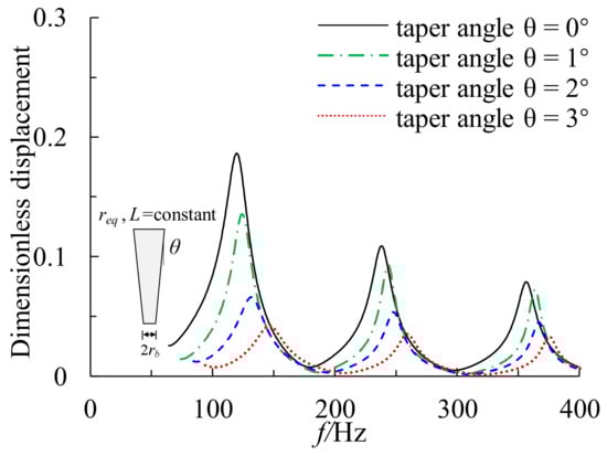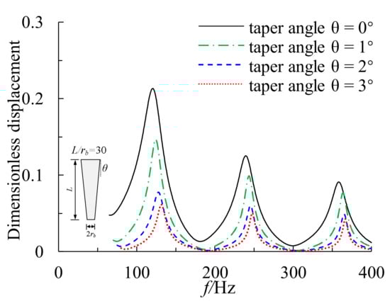 Dimensionless dynamic response of the tapered pile at different taper angles.