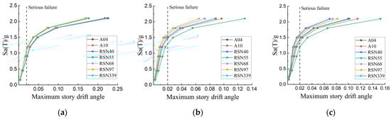 According to the types of members in the designed calculation example and the information from the vulnerability group database in PACT, the vulnerability groups and performance groups of the building were classified. The research in this paper only evaluated the seismic performance in the X direction, so only the performance group data in the X direction was considered. The vulnerability groups and performance groups are summarized in Table 10.