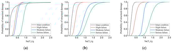 The assessment results of the three structures under the 8° frequent earthquake, the fortification earthquake, and the rare earthquake were obtained from the PACT software. Then, the assessment results are fitted by PACT software, and the probability distribution curve of each performance index was finally obtained. The loss results of the performance groups at the median value (P equal to 50%) of each performance index were extracted for comparative analysis.