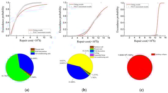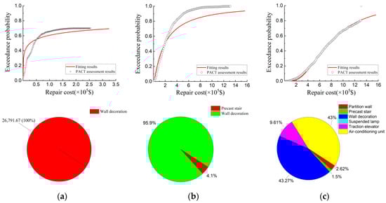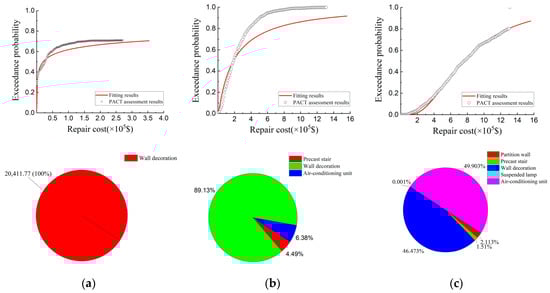 Repair costs and loss distribution of performance group of the normal isolation structure. (a) Frequent earthquakes; (b) Fortification earthquakes; (c) Rare earthquakes.