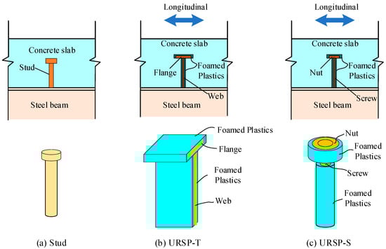 - Duan, L.; Chen, H.; Nie, X.; Han, S. Experimental study on steel-concrete composite beams with Uplift-restricted and slip-permitted screw-type (URSP-S) connectors. Steel Compos. Struct. Int. J. 2020, 35, 261–278. [Google Scholar]