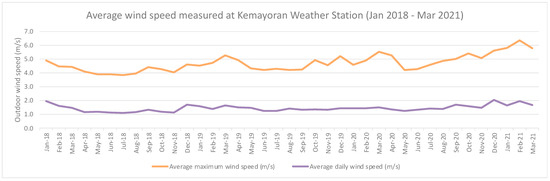 Chart of average wind speed measured at the Kemayoran Weather Station.