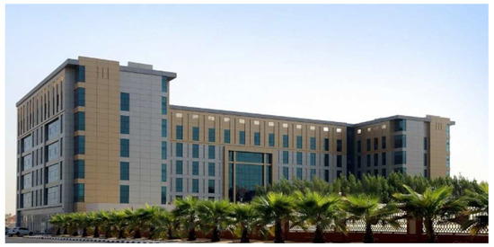 The focus of the measurements was the female dormitory (Figure 1) at Ajman University, with each of the lower, middle, and upper floors targeted, provided that the occupants consented to participate in the study (Figure 2) [33,34]. In selecting the studio-type rooms (Figure 3) to be measured, two factors were considered: the status of new renovation with new building materials and the occupants’ willingness to participate in the study [35,36,37].