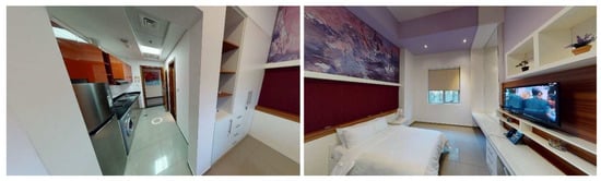 The on-site measurements were conducted in a studio-type measurement room, and each room contains a bathroom and kitchen facilities [68,69]. The ceiling is finished with gypsum board tiles, the walls are covered with paint and wood tiles, and the floor is adorned with marble tile flooring. The bed is of the independent type, and the desk, chair, and wardrobe are of the built-in type. We inquired about these furniture and finishing materials based on the building materials-related system, specifically seeking information on environmentally friendly products and harmful substance emissions levels [70,71,72]. However, the construction company’s employees could not provide us with the required details [73]. As an alternative approach, we contacted the furniture company directly and requested specific information from it [74,75,76]. Regrettably, we are still awaiting a response from the furniture company.