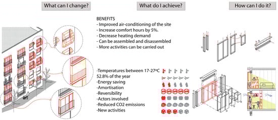 Finally, the proximity between researchers, technicians, and users, a trinomial that in a housing context is demonstrated as a positive factor that guarantees that certain decisions are taken in the most appropriate way. In addition, it is a procedure that also brings us closer to the idea of assisted rehabilitation, in which we must not forget the importance of specific knowledge of rehabilitation techniques and intervention on existing buildings.