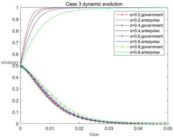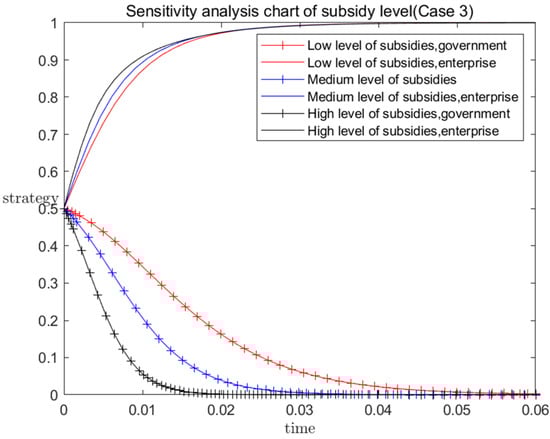 - One finding of this paper is that government subsidy can accelerate or delay enterprises’ choice to use BIM technology, but has no decisive impact on whether enterprises choose to use BIM technology in the case of ESS. That is to say, in the case of a stable point in an evolutionary game, even if the government makes efforts to subsidize, enterprises will still give up the strategy of using BIM due to cost increment, risk and other problems, which will only increase the burden on the government. Therefore, the government should avoid giving ineffective subsidies and find ways to promote enterprises’ application of BIM from the aspects of environmental and social benefits. This finding will bring enlightenment for the government to formulate reasonable subsidy policy.