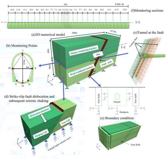- Liu, G.; Zhang, Y.; Ren, J.; Xiao, M. Seismic Response Analysis of Tunnel through Fault Considering Dynamic Interaction between Rock Mass and Fault. Energies 2021, 14, 6700. [Google Scholar] [CrossRef]