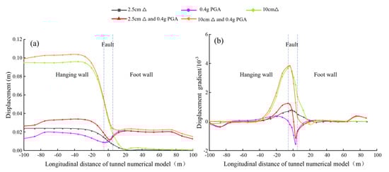 - Cui, Z.; Sheng, Q.; Li, J.H.; Fu, X.W. Deformation and failure of a tunnel subjected to the coupling effect of a quasi-static faulting and seismic impact. Rock Soil Mech. 2022, 43, 1364–1373. (In Chinese) [Google Scholar]