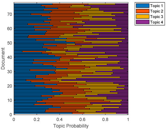 The “Example” option under the “Help” menu in the MATLAB program was referred to for the codes used [41]. MATLAB provides several examples for conducting data text analytics. This study utilized the examples under the “Text Analytics Toolbox”. To generate a word cloud, “Visualize Text Data Using Word Clouds” was employed. To select the number of topics from a set of documents, “Choose Number of Topics for LDA Model” was used as a basis. For the generation of the topics, “Analyze Text Data Using Topic Models” was used. Lastly, to identify the proportions of the topics in each paper, the study employed the “Visualize LDA Topic Probabilities of Documents” example. Upon inputting the codes in these examples, the results were generated.