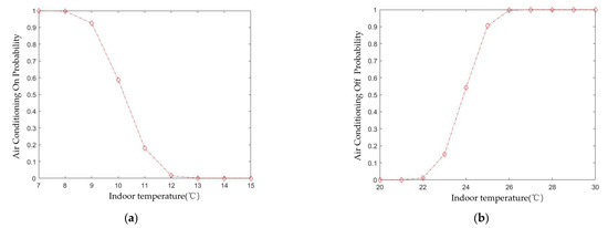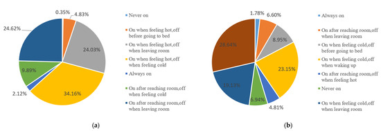 In this study, we will choose one of the “feedback-based” and “time-based” conditional probabilistic models (Table 5) to describe the residents’ energy use behavior. The human control behavior for window and air conditioner is an important factor affecting energy use [33]. The control behaviors for window and air conditioner with the largest proportion in the survey were selected as the typical modes.