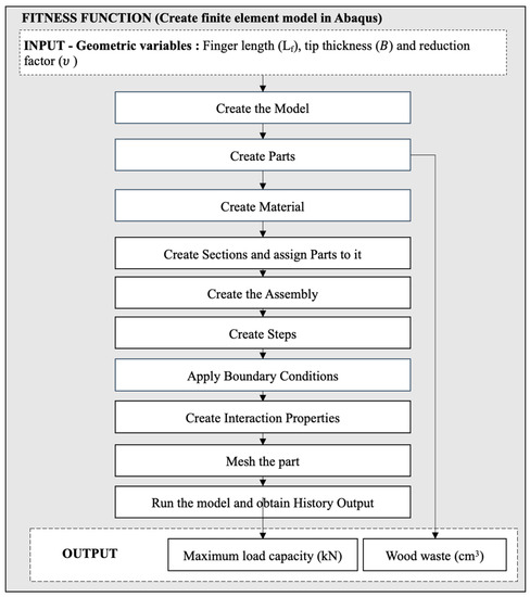 In addition, the multi-objective modified firefly algorithm (MOMFA) was used to maximise the finger joint resistance while simultaneously reducing the generated waste material. These findings demonstrate that if waste reduction is not addressed, there will be a substantial amount of wood waste. The best combinations of design parameters () can not only increase load capacity but also reduce the waste generated during the joining process. Therefore, it is necessary to consider the manufacturing process holistically. The holistic framework presented in this study can support researchers and engineers in effectively designing and optimizing the performance of finger-jointed timber.