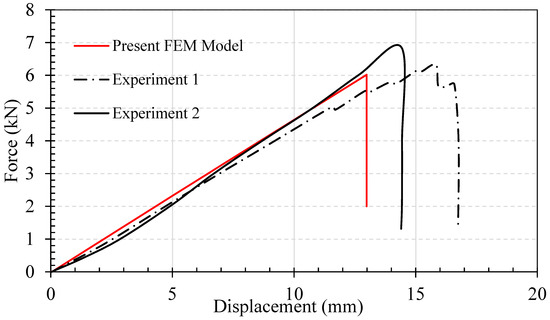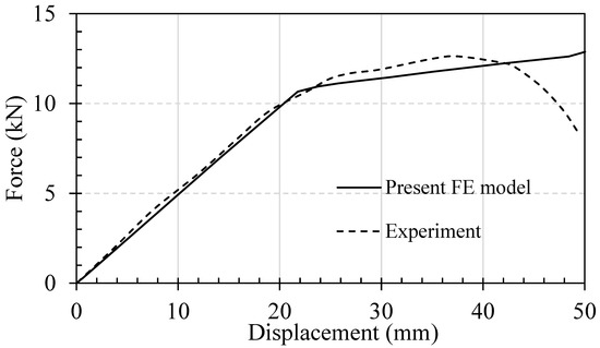 A comparison between the numerical and experimental load–midspan deflection results for the finger-jointed beam.