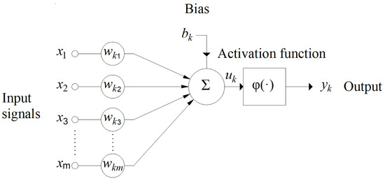 The basic structural element (Figure 1) of neural networks is a neuron. The neuron model consists of the following elements [20].