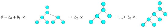 where is the bias term, is the ith scaling parameter, is the ( vector of outputs from the ith tree (gene), and whose structure is represented by Figure 6.