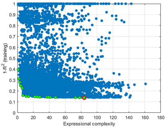 In addition, priority was given to finding a solution that has a lower complexity of expressions. The complexity of the expression is defined by the expressional complexity value given by GPTIPS 2.0 [27,28] software. As a methodological approach, the VIKOR method for finding compromise solutions was implemented. In this way, the search for a multicriteria compromise optimal solution was started.
